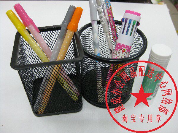 Korean creative stationery Fashion circular iron-made mesh spray plastic anti-rust pen holder desktop storage cylinder