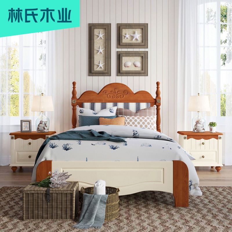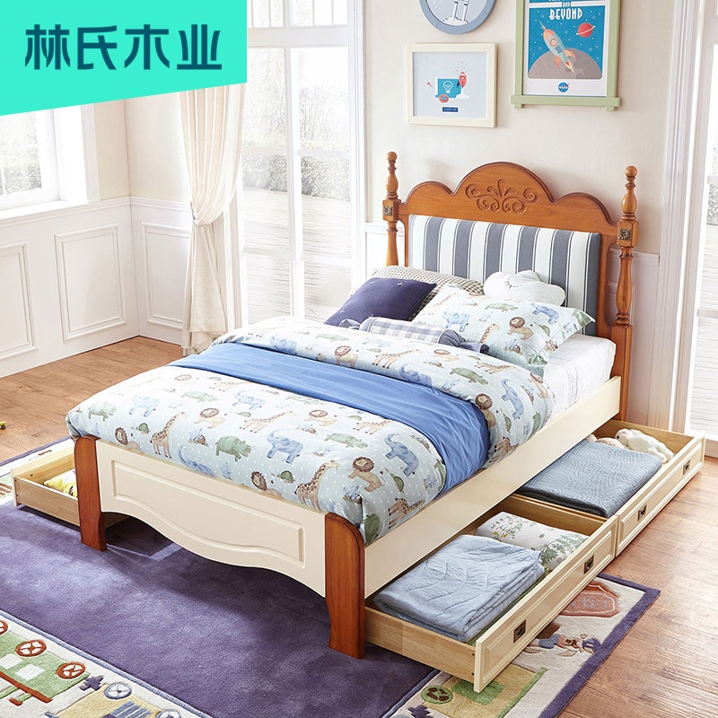 Lin's wood industry American style 1 2 boys bedroom 1 5 meters single small bed children's room furniture combination set LSN1A