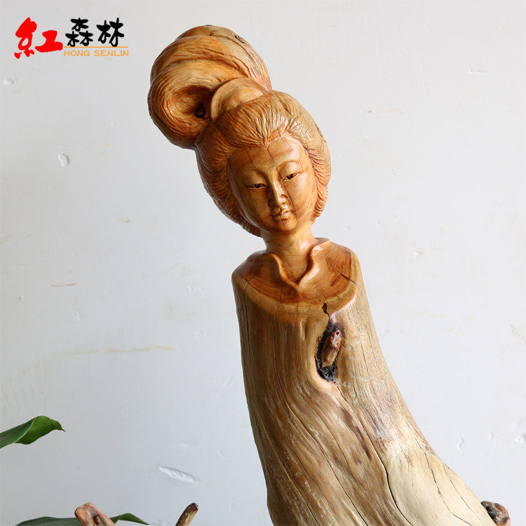Root carving wood carving Taihang cliff Cypress beauty Aging material craft Business gifts Office desk ornaments character Buddha