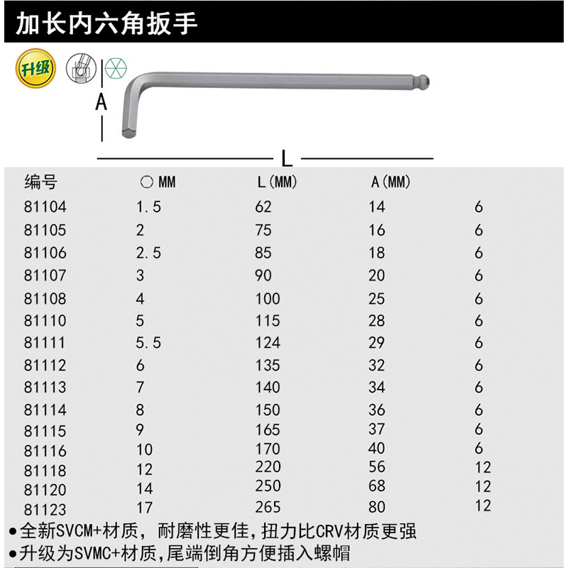 Shida Tool Lengthened Ball Head Inner Hexagon Wrench 81104-81116 1 5mm-10mm