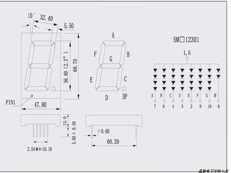 ARK Ark SM712301WT white super bright with decimal point a common yang 2 3-inch led glow tube