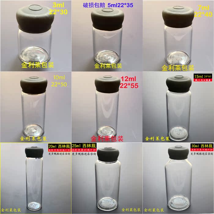 Value 3 5 7 8 10 12 15 20 30ml vial with flip stopper reagent sub-bottling high temperature resistance