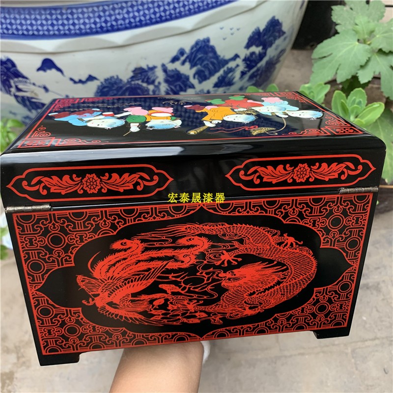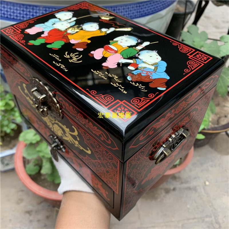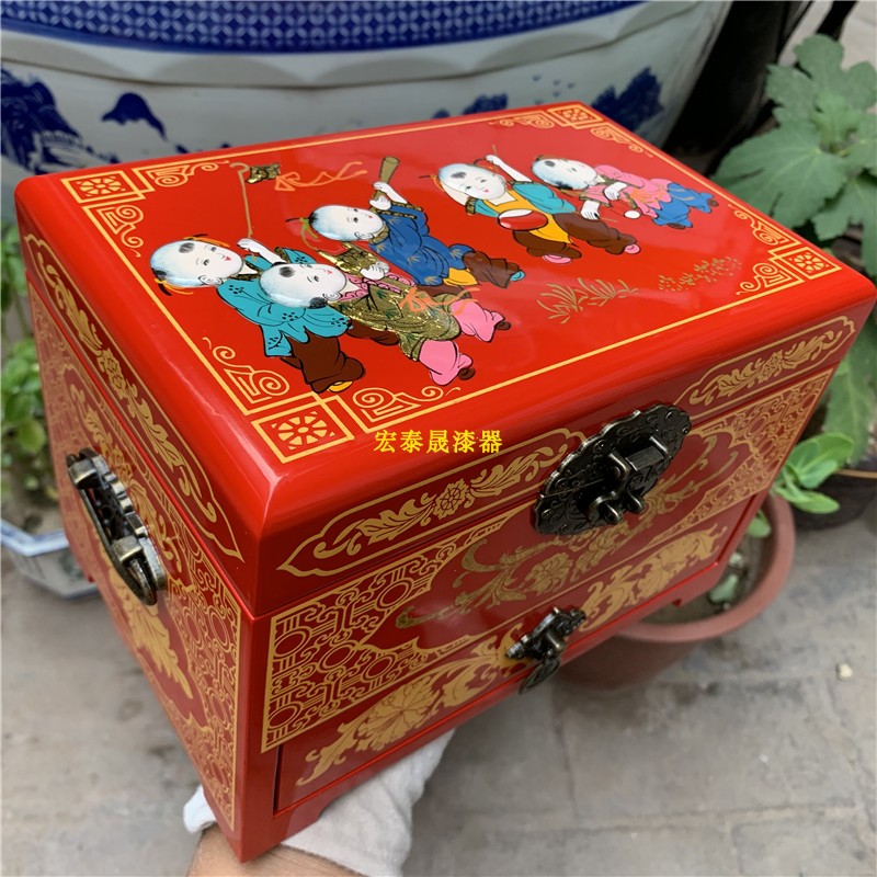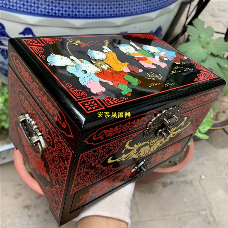 Shanxi Pingyao Lacquerware Jewelry Box Large Capacity Wooden Hand-painted Crafts Storage Box Wedding Gift