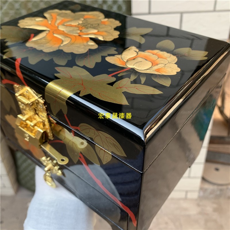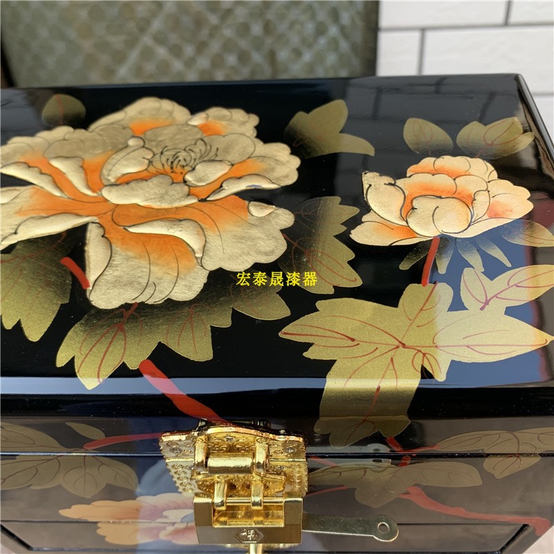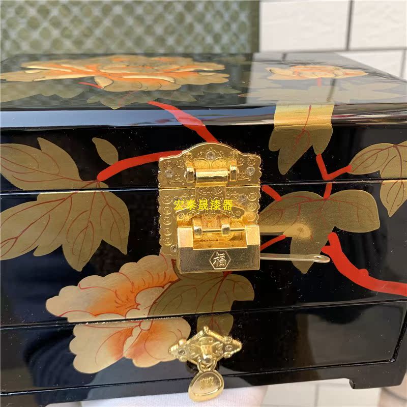Pingyao Lacquer Ware Three-tier Drawer Jewelry Box Classical Double Peony Jewelry Box Mother's Day Gift