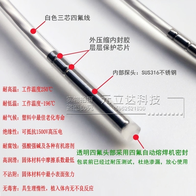 Taiwan imported anti-corrosion Teflon tetrafluoro PT100 temperature sensor electroplating industry acid-base thermal resistance
