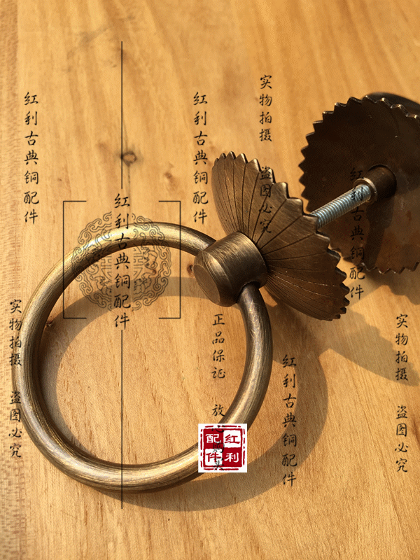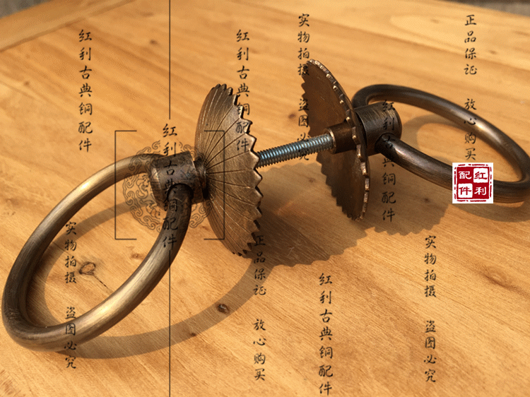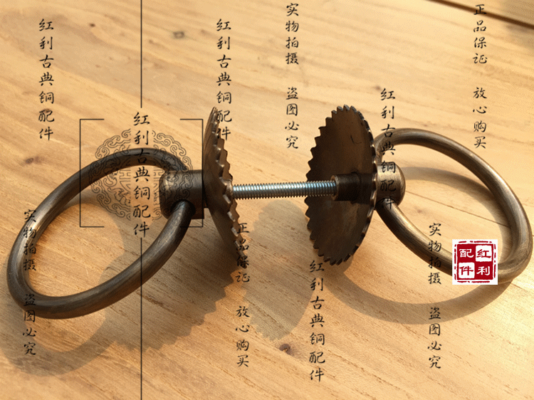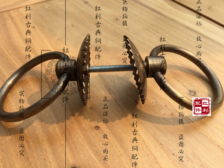 (Dividend Classical Bronze Accessories) antique pure copper handle bifacial mounted pull ring pair open door glass door bungling screen