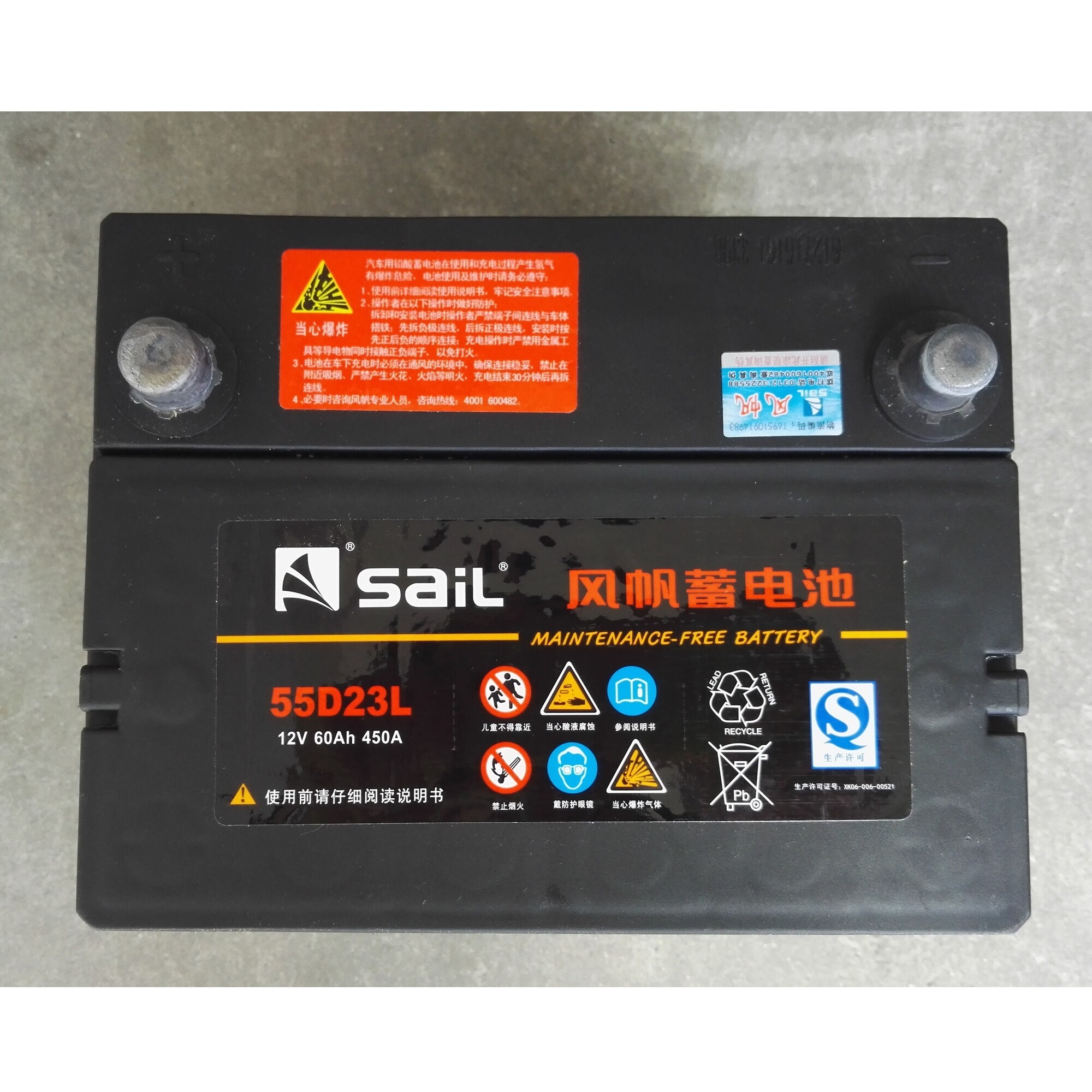 Vehicle storage battery 12V sail storage battery 55D23L storage battery 60AH12V Maintenance-free
