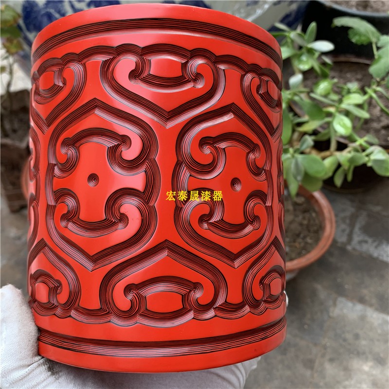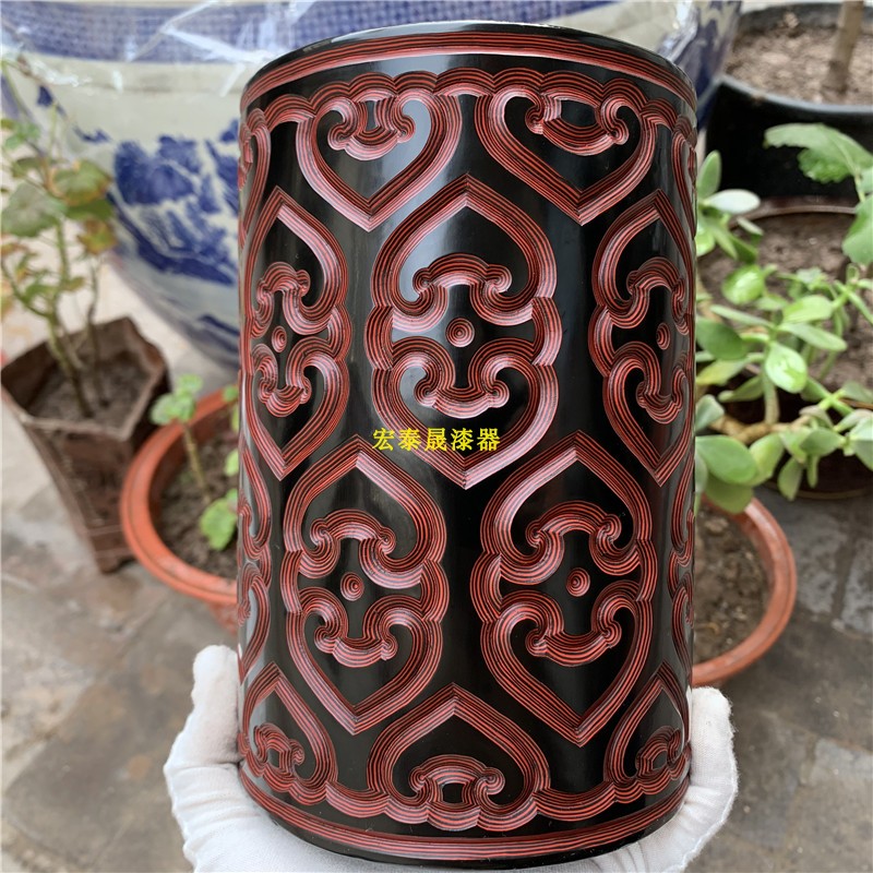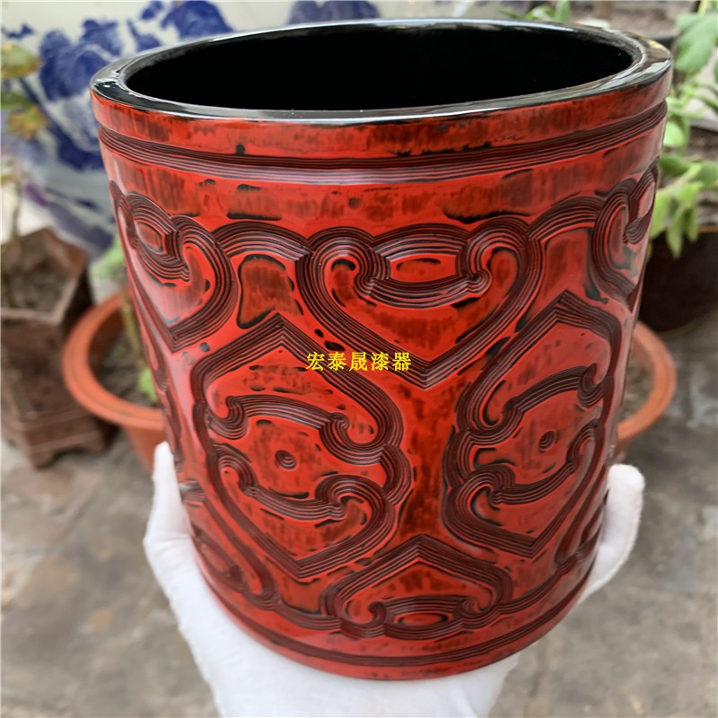 Shanxi Pingyao lacquerware cloud striping and rhinoceros craftsmanship pen holder wood carved lacquer craftsmanship swing decoration Spring Festival sends leading gifts