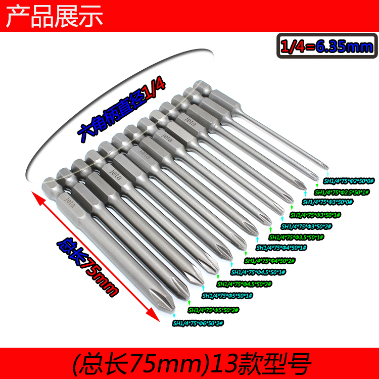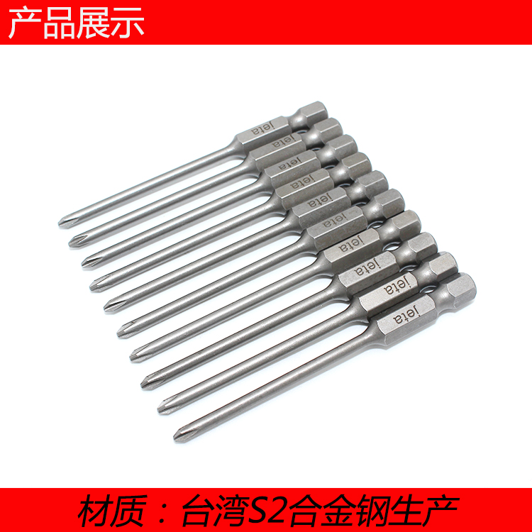 Taiwan S2 steel electric drill extended cross-shaped pneumatic screwdriver screwdriver head Electric screwdriver magnetic pneumatic screwdriver 75mm long
