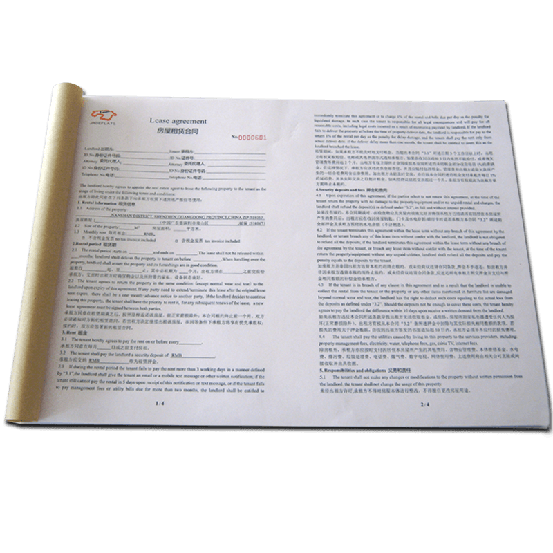 Document Contract Receipt Custom Joint Single Two-Link Triple Duplicate Housing Lease Sale and Purchase Agreement Printing Custom Sales