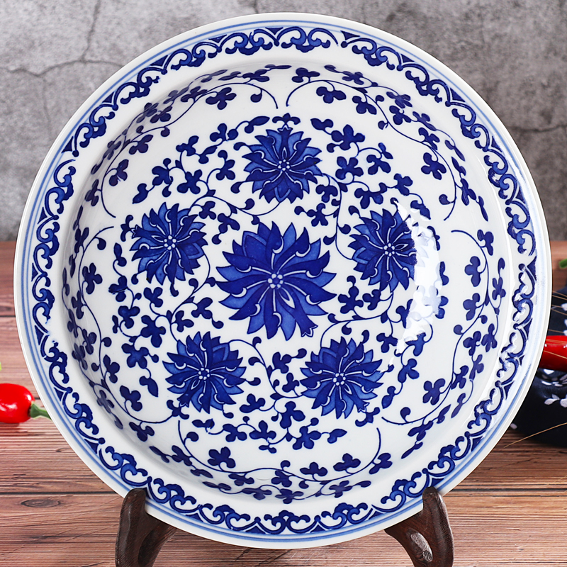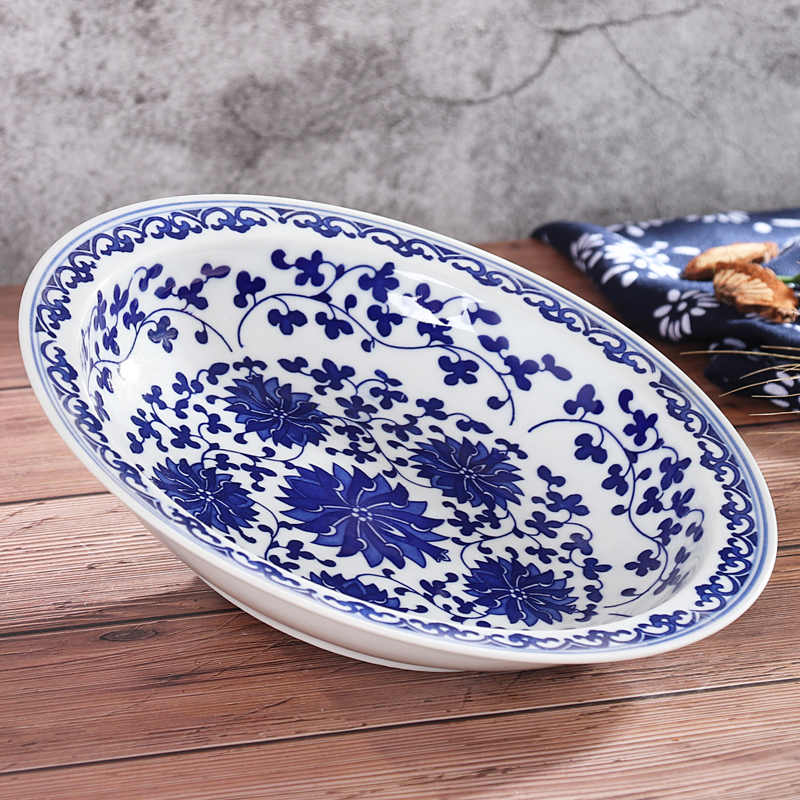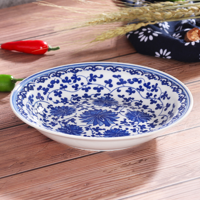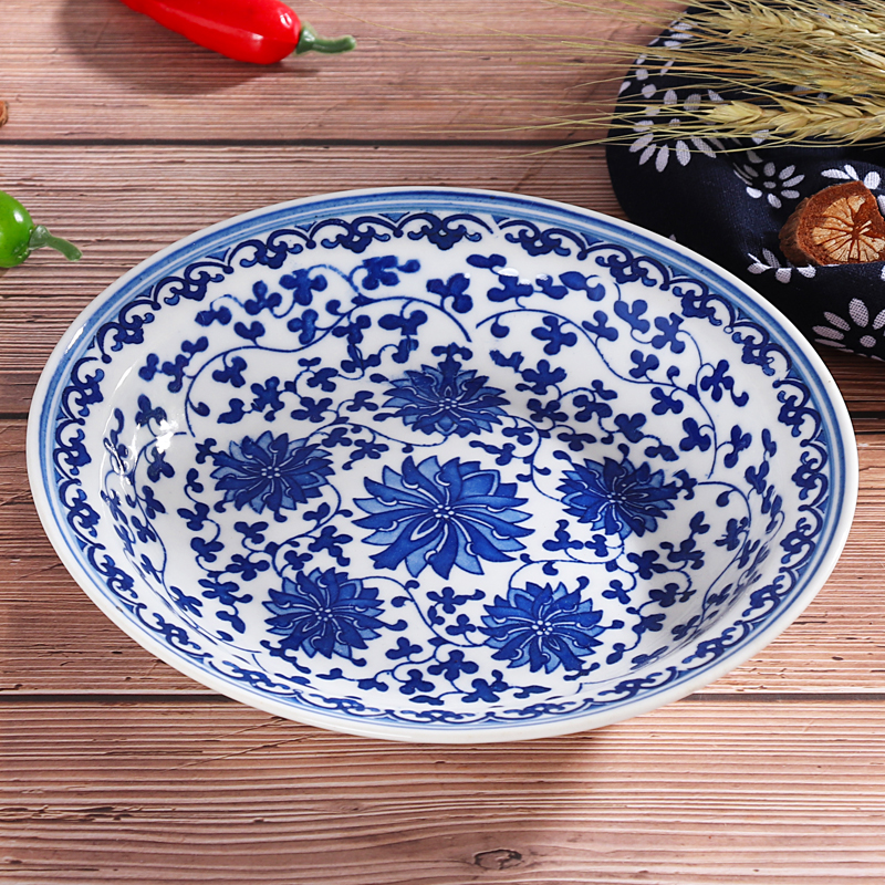 Jingdezhen Ceramic dishes Qinghua Yanglian vegetable dish Porcelain Soup Pan Preferential height pan Flat Pan Meal Pan-Taobao