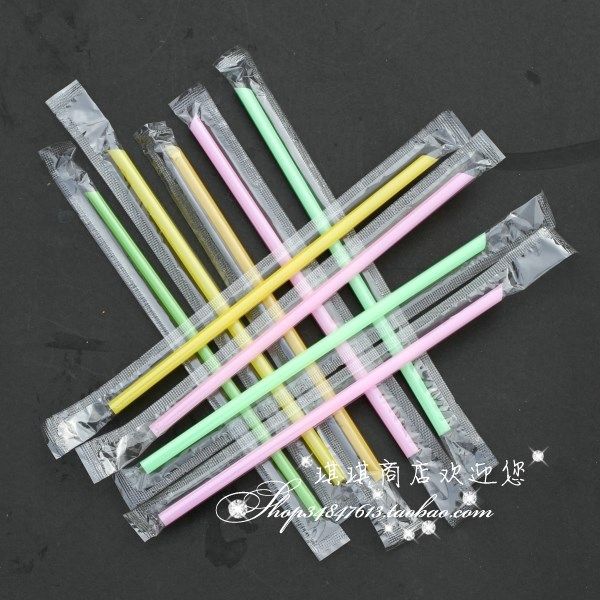 Disposable straw soy milk independent single-loaded long thin pointed black transparent milk tea beverage 20cm full reduction