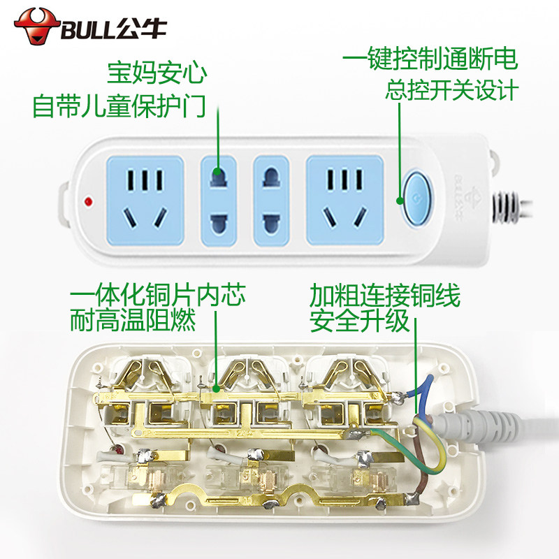 Bull socket panel porous plug row Household multi-function long drag wiring board electric plug board with line row plug