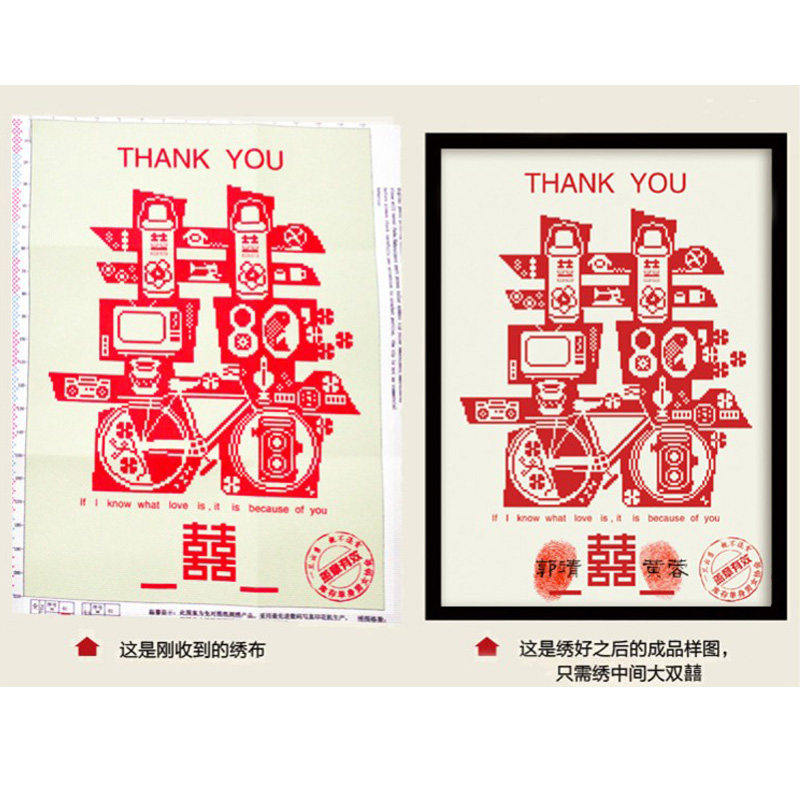 3d cross stitch Double Happy word precision printing 80 after 90 double word new bedroom wedding wedding celebration wedding hanging picture