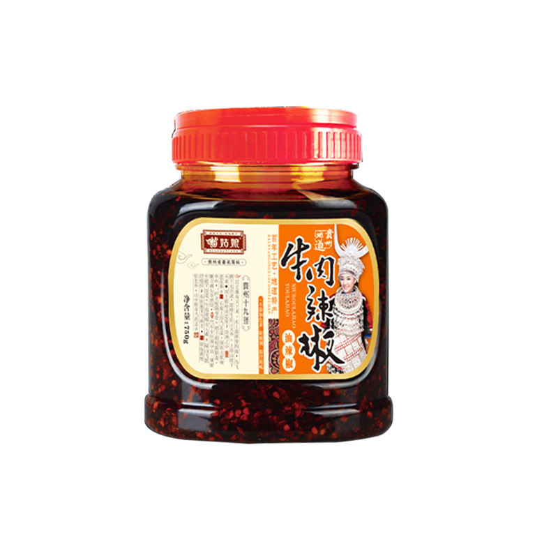 Guizhou Special Seedle Girl Beef Pepper 750g large bottle of chili sauce mixed rice and powder Qiangfang