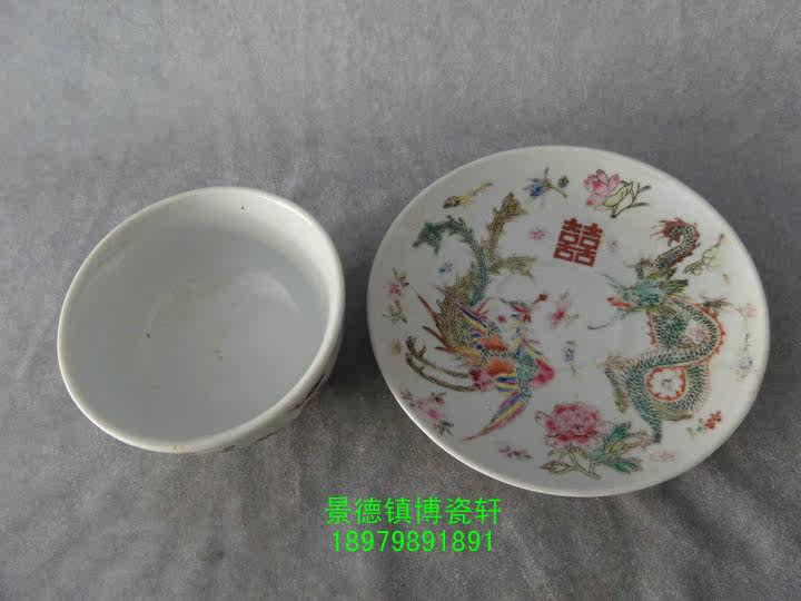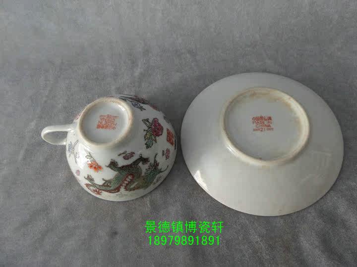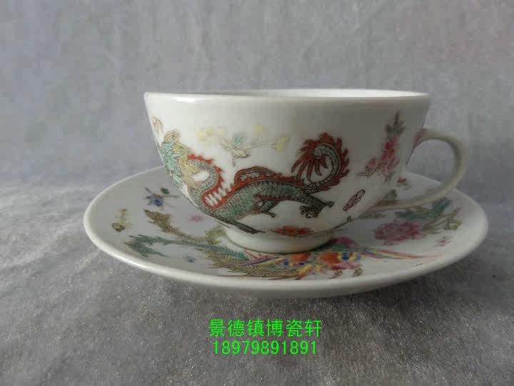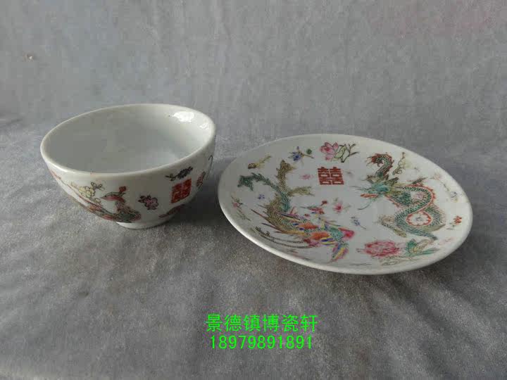 Jingdezhen Cultural Revolution Factory goods Porcelain Ware Hand-painted Pink Dragon Phoenix Double Joy Two Pieces Sets of Pu'er Tea Cup set