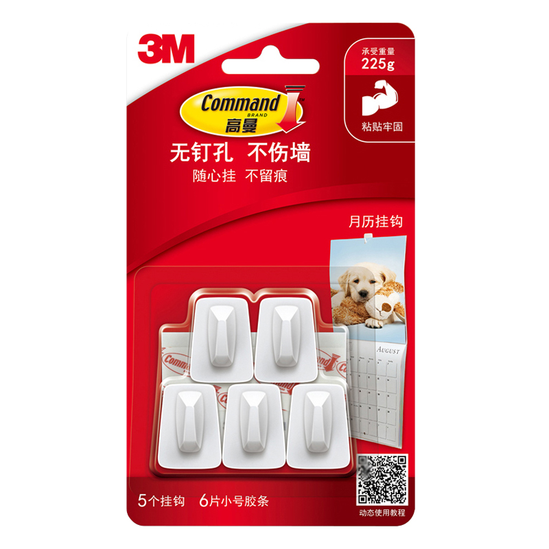 3M Goldman traceless calendar hook, stick firmly, remove traceless, load-bearing 225g, traceless multi-purpose sticky hook