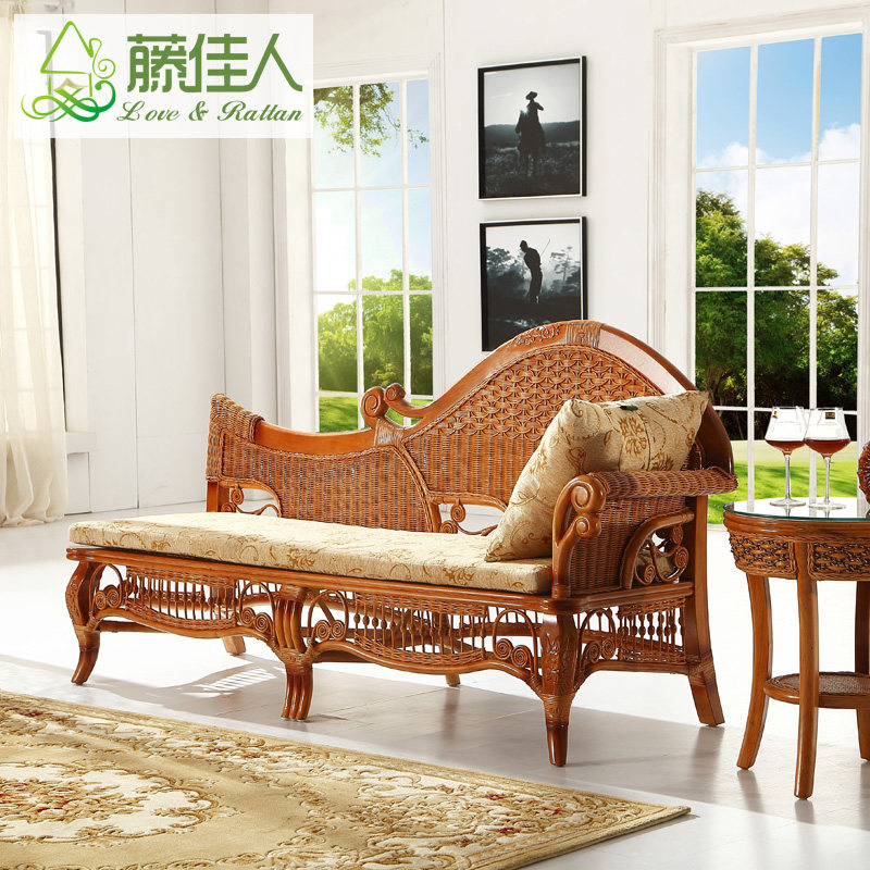 Chinese style chaise longue beauty couch bedroom solid wood real rattan chair sofa simple small apartment living room toffee reclining chair