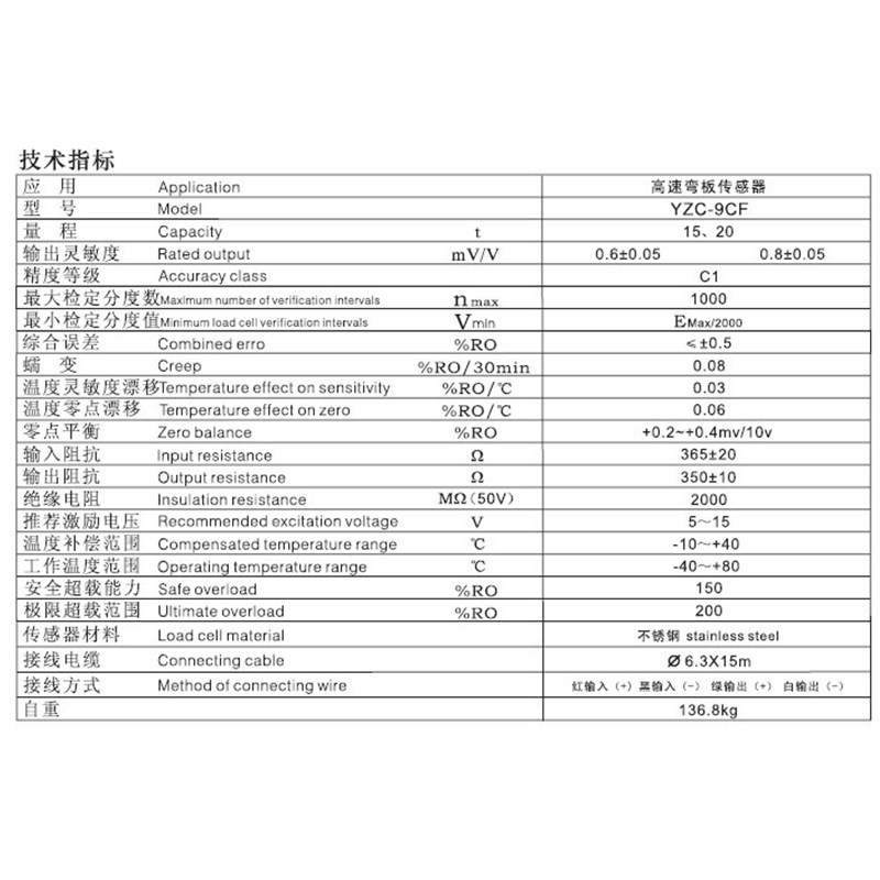 Wide measurement weighing sensor YZC-9CF high speed bending plate sensor 15T20T resistance strain pressure type