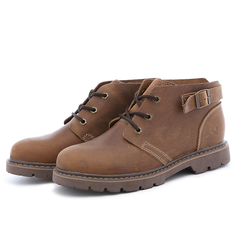 Cowhide short boots leather casual men's boots retro Martin boots breathable tooling boots leather boots trendy round toe women's high top shoes