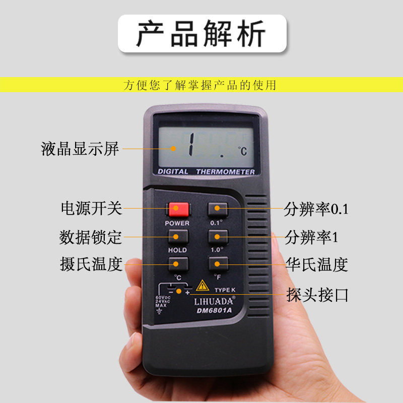 Temperature meter DM6801A dual monitor DM68021 catch line 600 degree high temperature line