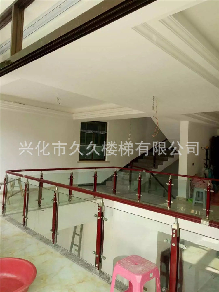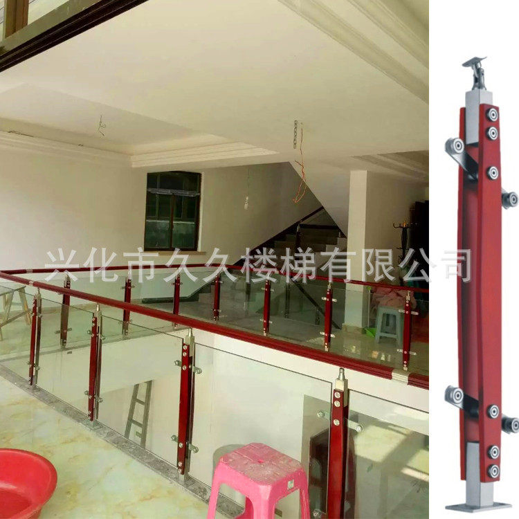 Manufacturer Custom Stainless Steel Stairway Railing Armrest Indoor Villa Balcony Guardrails Solid Wood Rhomboid clamping wood upright post