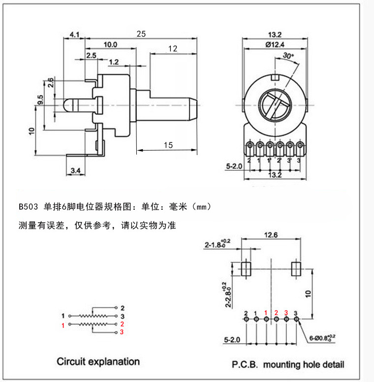 B503 50K Volume Potentiometer DVD EVD Six - foot Potentiometer Single - row Dual - coupling Single - row Six - foot Potentiometer