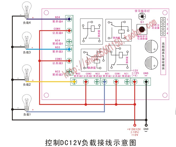 12v 4-way wireless remote control switch emitting receiving four-way switch learning code point motion self-lock interlock