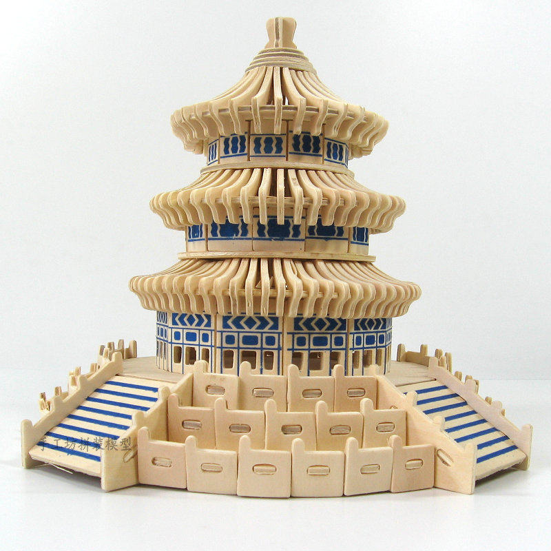 Wood 3D stereo puzzle intelligent wood puzzle children's puzzle architectural model Beijing Tianjin
