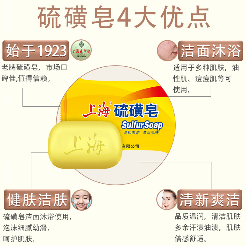 Shanghai Sulfur Soap Sulfur Soap Wash Hand Bath Soap Bath Whole Body Cleansing Department Female Men Wash Face to remove mites