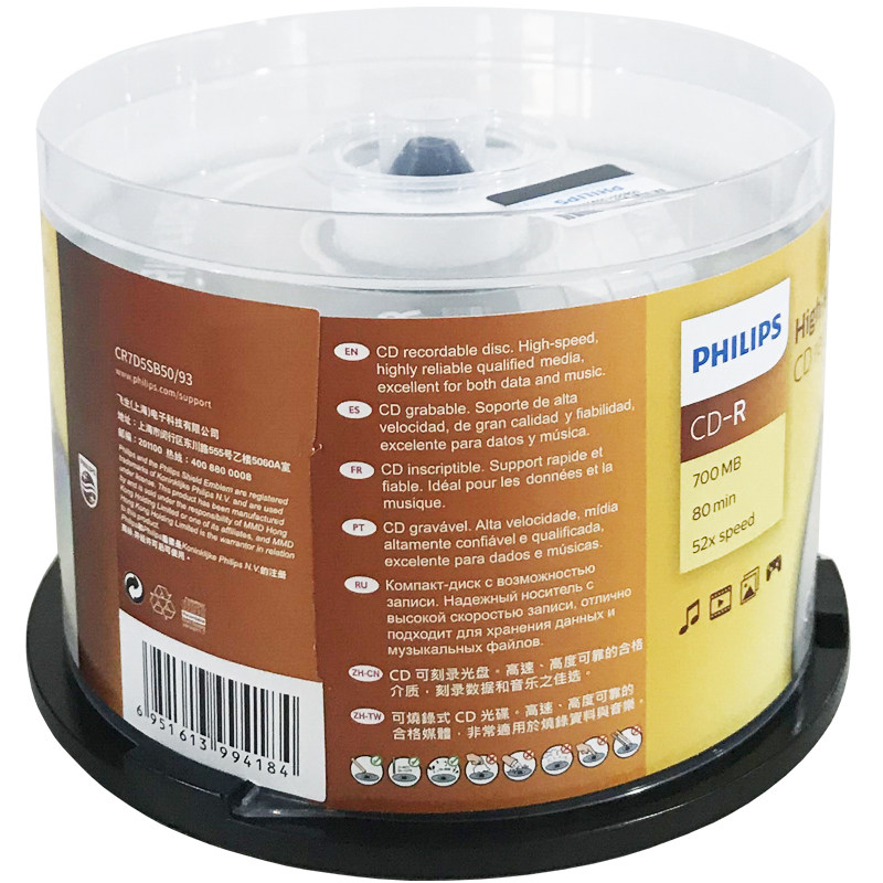 PHILIPS Philips CD-ROM 52X CD-R CD burning disc Blank Disk 50 buckets Car music CD disc without loss recording disc music blank disc