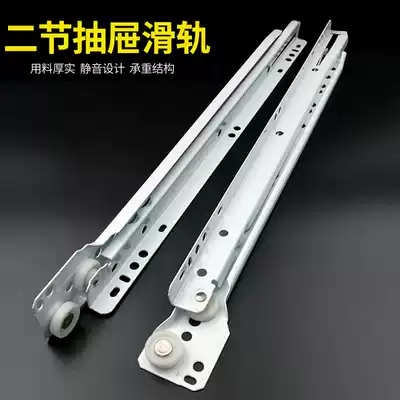 Furniture drawer guide rail with wheels White two-section guide rail track linear slide Keyboard bottom silent guide rail
