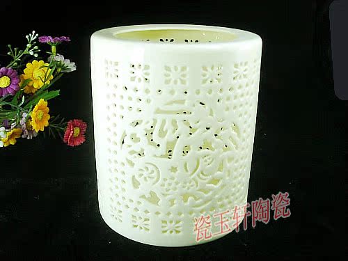 Jingdezhen ceramics: carved pen holder Carved stationery pen wash pen holder Four treasures of Wenfang