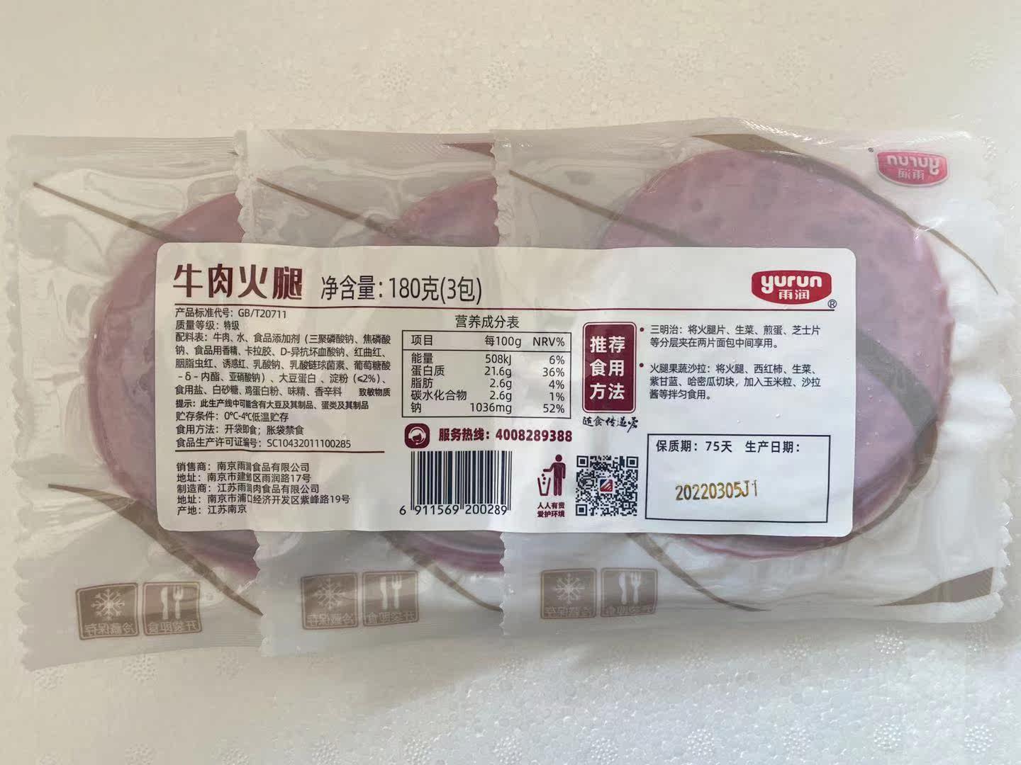 Yurun 180G beef ham slices smoked ham slices j bread scallion patties burger sandwich breakfast ingredients