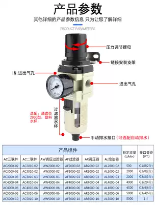 Pneumatic air source processor single unit air filtration pressure reducing pressure regulating valve AW1000-M5 1000-m5d