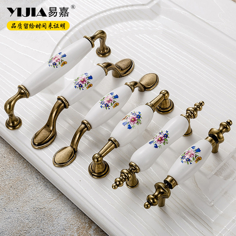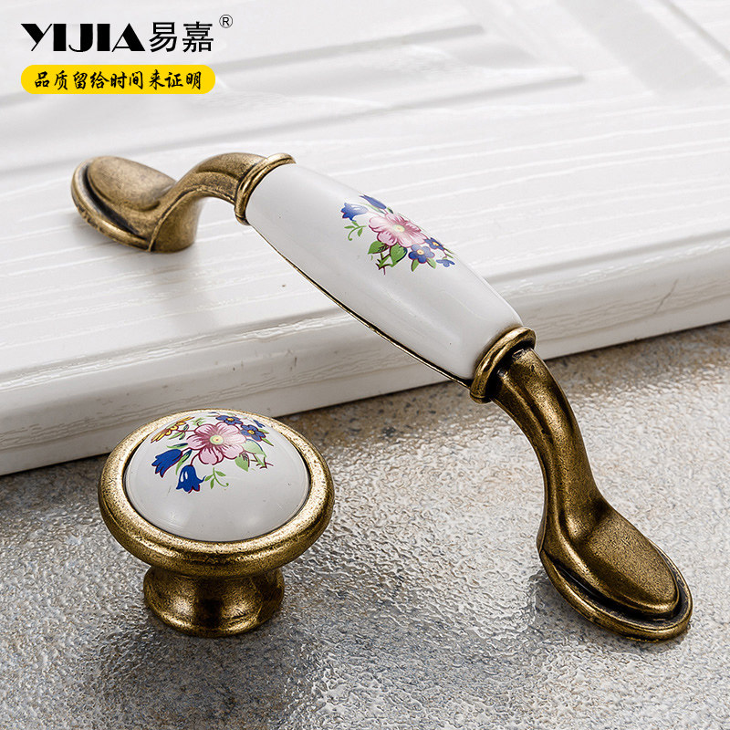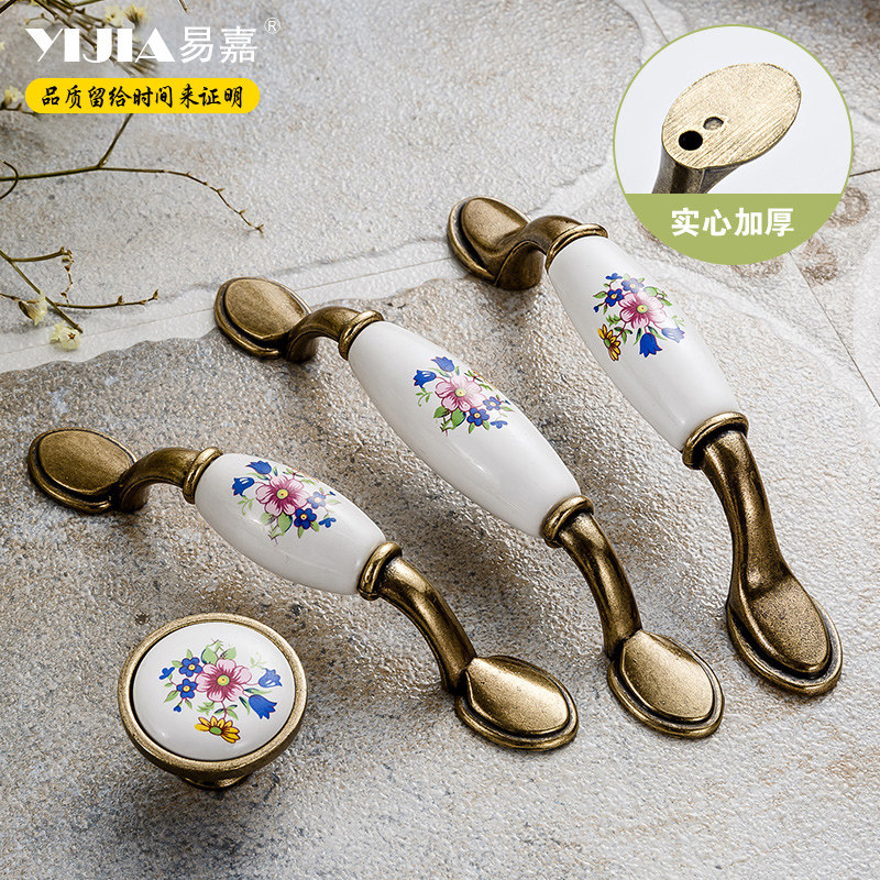 Easy Jiaolu style antique bronze printed ceramic handle Chinese style field garden cabinet overall cupboard chest of drawers stand door handle