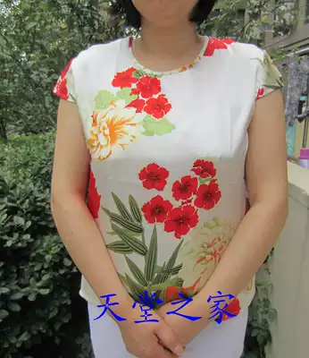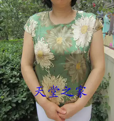 Summer women's loose T-shirt Silk crew neck top Floral shirt printing large size short-sleeved middle-aged fat mother