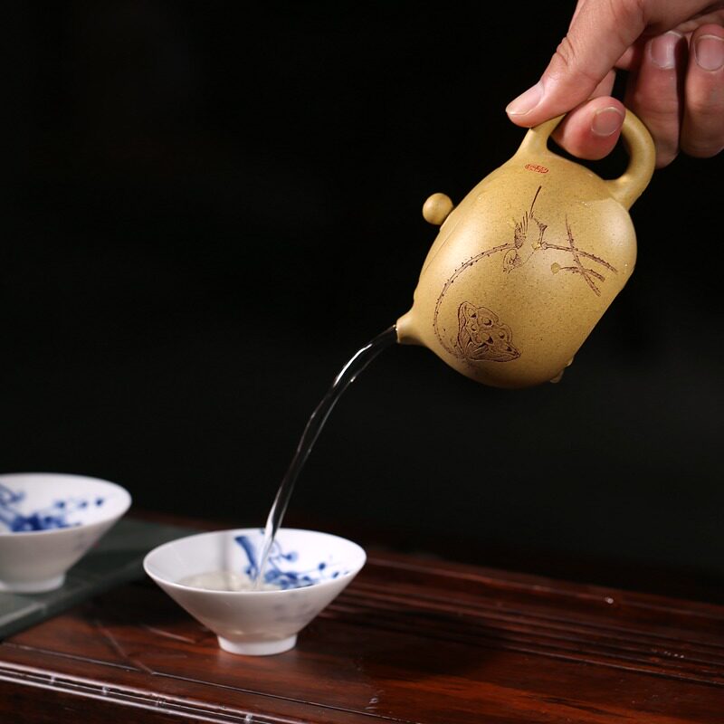 Famous pot Qiuyue Yixing purple clay pot full handmade name Teapot Benshan green mud Xi Shi pot household Teapot Tea Tea