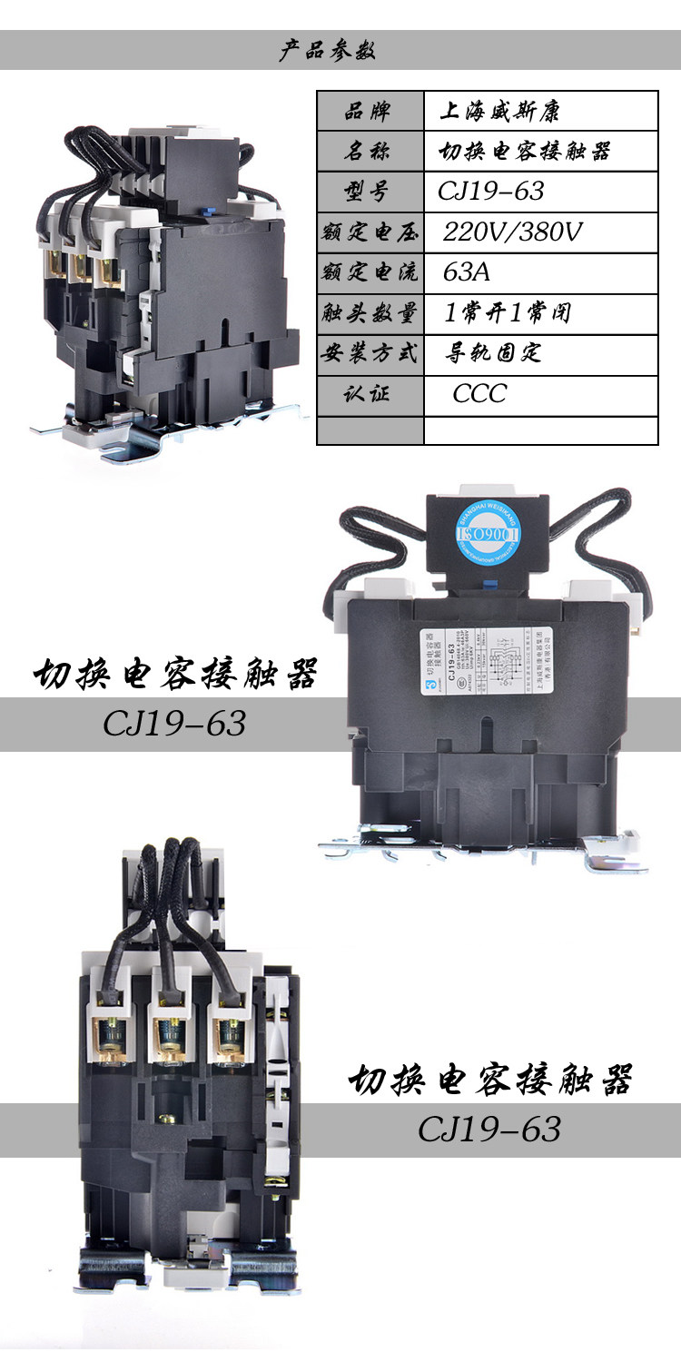 Shanghai Wiescon switching capacitor contactor CJ19 (16 -63 -63 63A 220V 380V