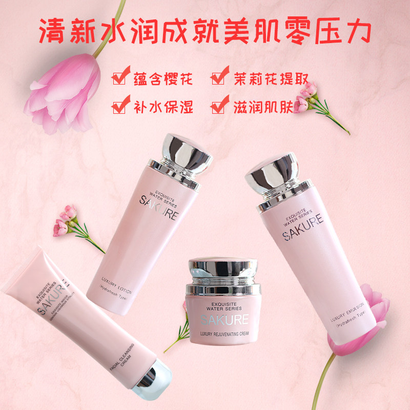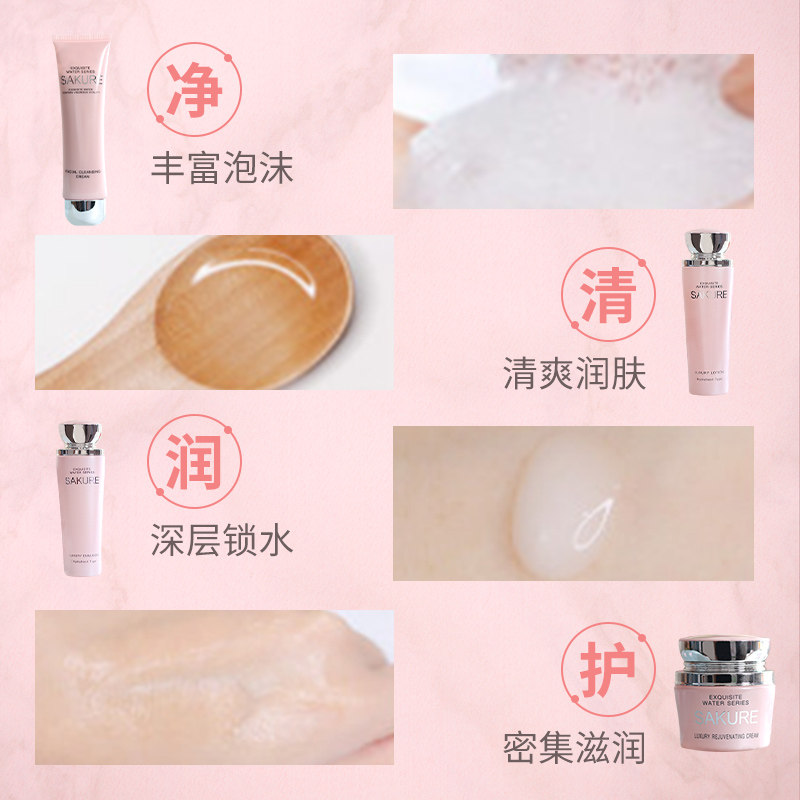 Cherry Blossom Source Water Lingo Skin Care Products Cover Set Wash Noodles Milk Essence Water Lotion Face Cream Moisturizing And Moisturizing Special Cabinet Woman