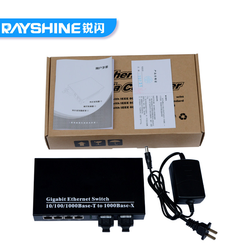RAYSHINE sharp flash gigabit 2-light 4-electric fiber optic transceiver two-light four-electric switch single-mode dual-fiber