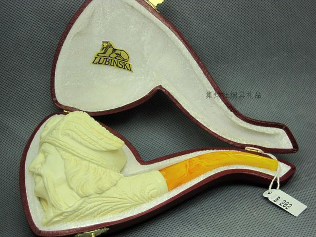 Rubinski LUBINSKI pure hand-made original stone carved large figure of Turkish sea bubble pipe