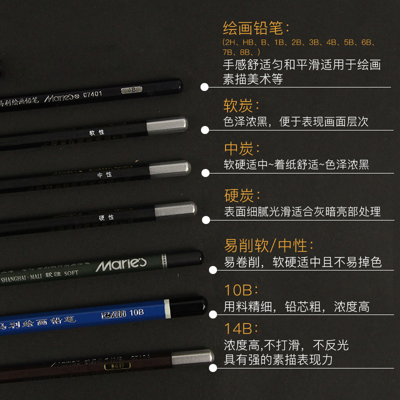 Marley sketch pencil 2B4B drawing 14b carbon pen set HB extra thick matte art special sketch soft sketch pen