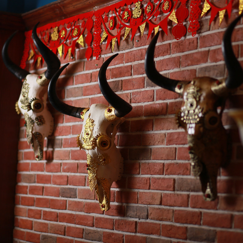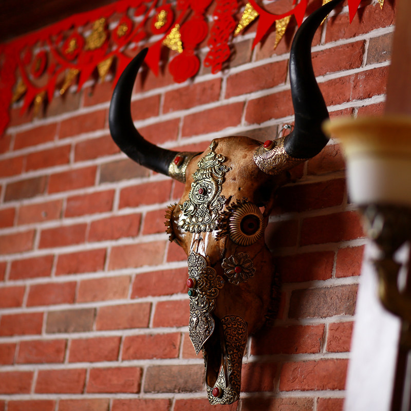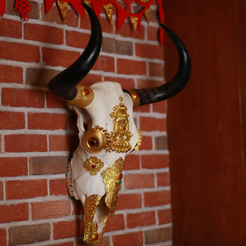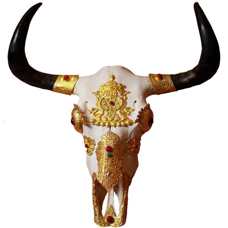 Hand-wrapped copper Yak skull decoration wall-mounted specimen ornaments Tibetan home decoration craft Minotaur gifts