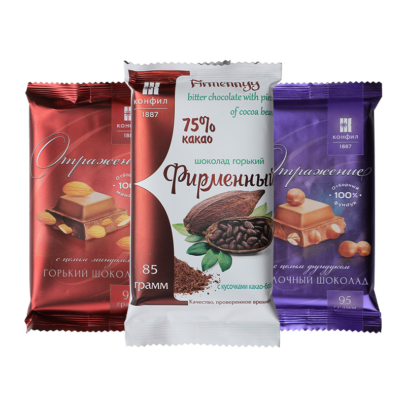 Whole hazelnut sandwich 95g Whole almond kernel sandwich 95g Cocoa bean sandwich 75% cocoa black chocolate 85g