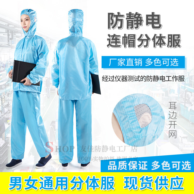 Dustproof clothing hooded two-piece one-piece electrostatic clothing dust-free spray paint clean protection work men's and women's clothing industrial dust