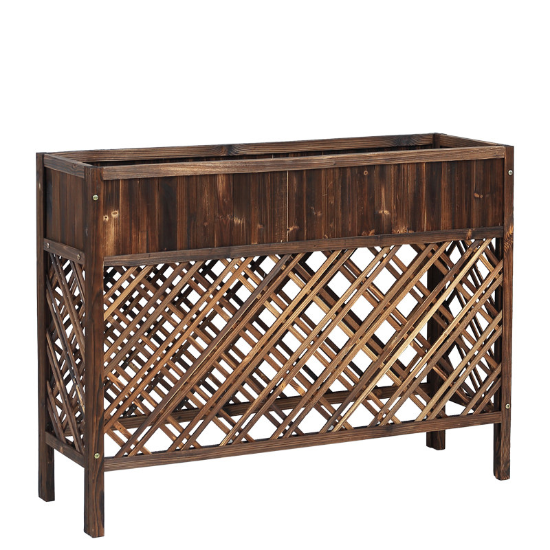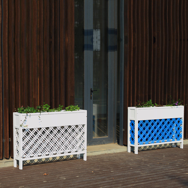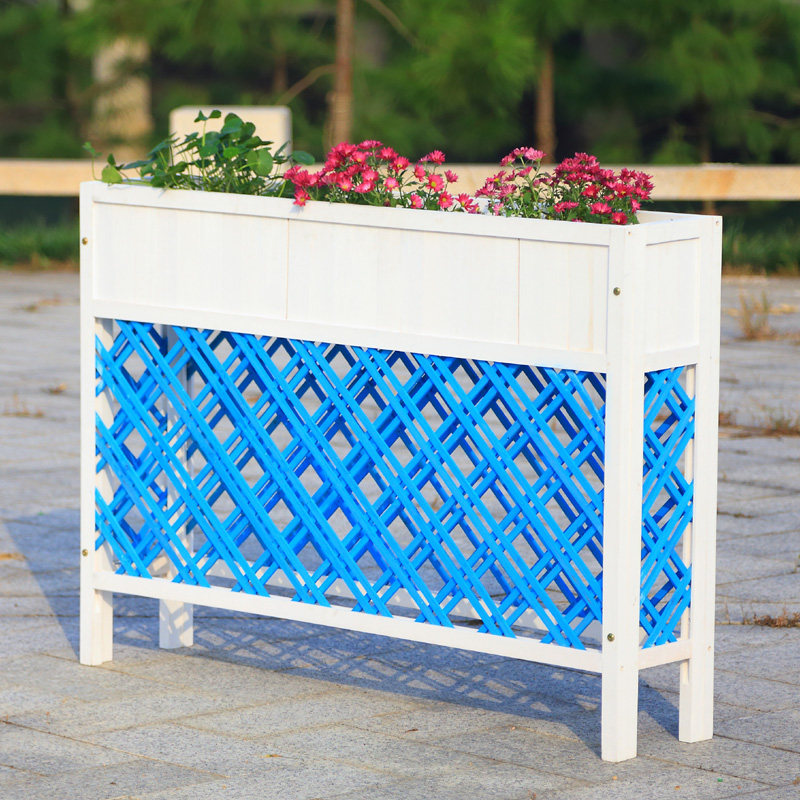 Outdoor solid wood balcony flower frame planted trough anti-humidified flower slot partition grid white wooden fence screen