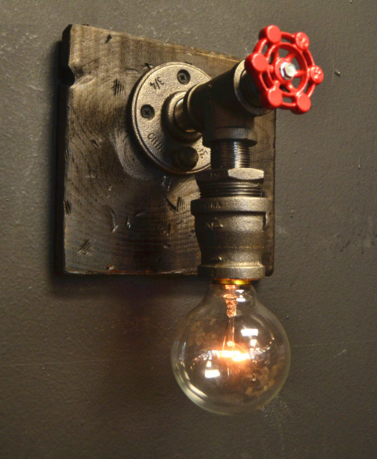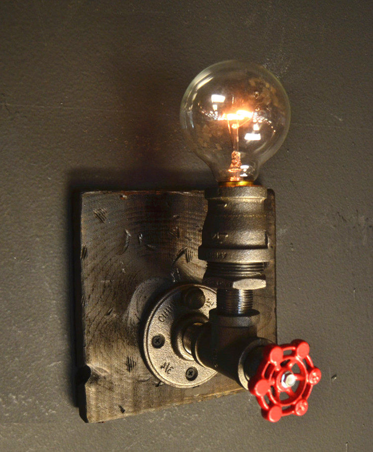 Industrial Retro Style Steam Valve Switch Water Pipe Iron Cage Light Retro Edison Wall Light