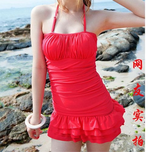 Skirt-style even for a swimsuit in a dress.