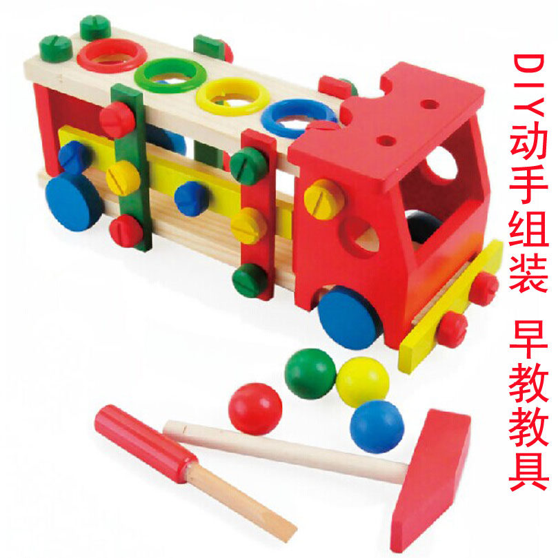 3-4-5-year-old children early teaching aids for dismantling and knocking on ball screws carts wooden assembled engineering vehicles to assemble puzzle power toys